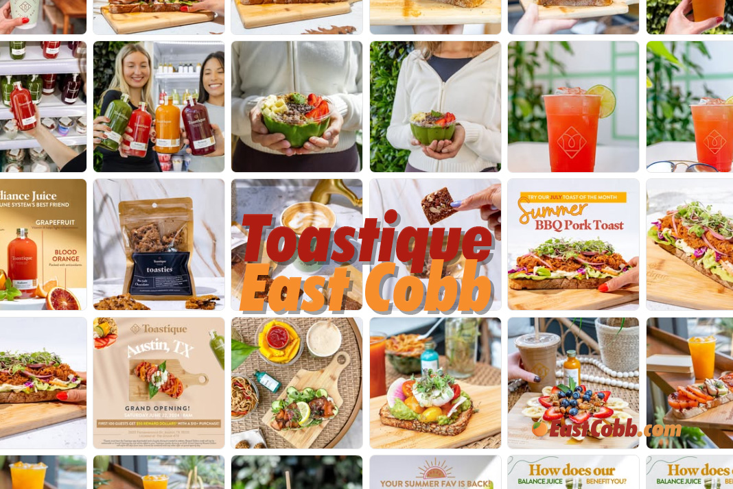 The menu features gourmet toasts piled high with nutrient-packed toppings, refreshing smoothies, cold-pressed juices, and flavorful bowls, along with coffee and espresso options. With hours from 7 am to 5 pm daily, Toastique East Cobb is ready to fuel early risers, lunchtime crowds, and mid-afternoon snack seekers.
